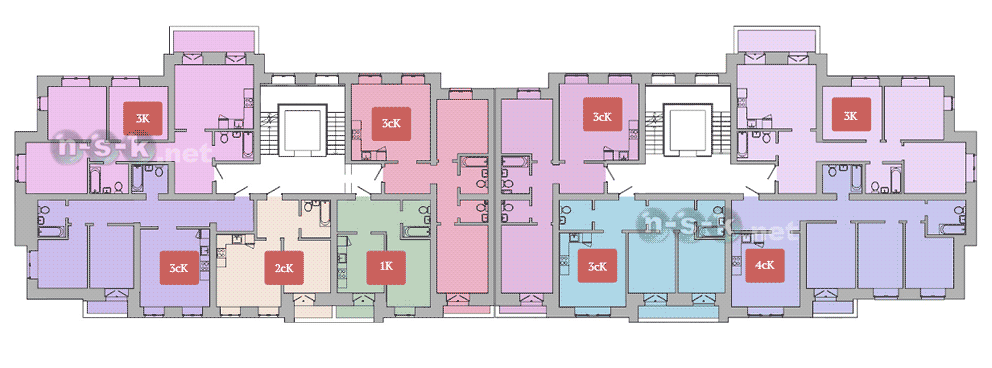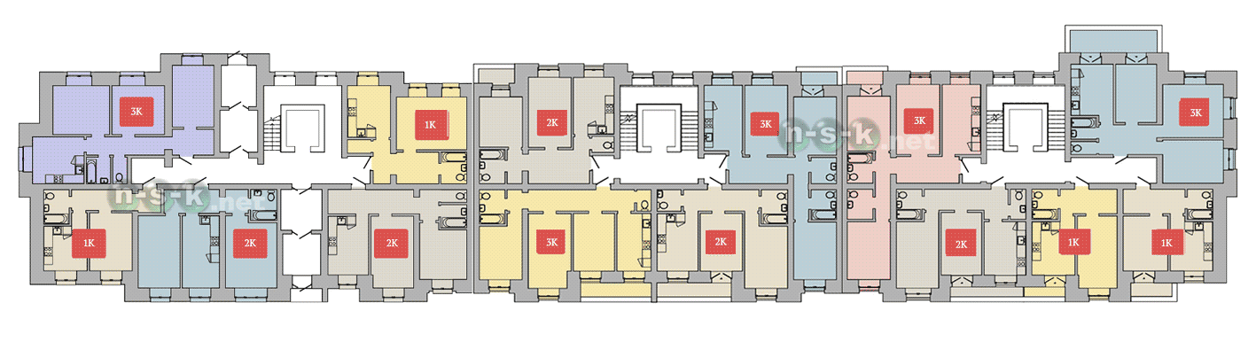 На каждом этаже новостройки расположено около 5 квартир. Это очень хорошие показатели для Новосибирска, свидетельствующие о комфортной площади квартир и ориентации на постоянный состав жителей дома. Такая поэтажная разбивка соблюдает правильный баланс: многокомнатные жилые помещения представлены в необходимом количестве, нет перекоса в сторону 1-комнатных квартир и студий. Еще о новостройке по ул.Планетная, 55/1, 55/2