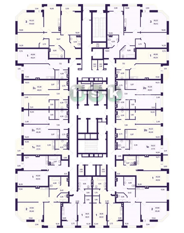 План типового этажа 1-комнатные квартиры