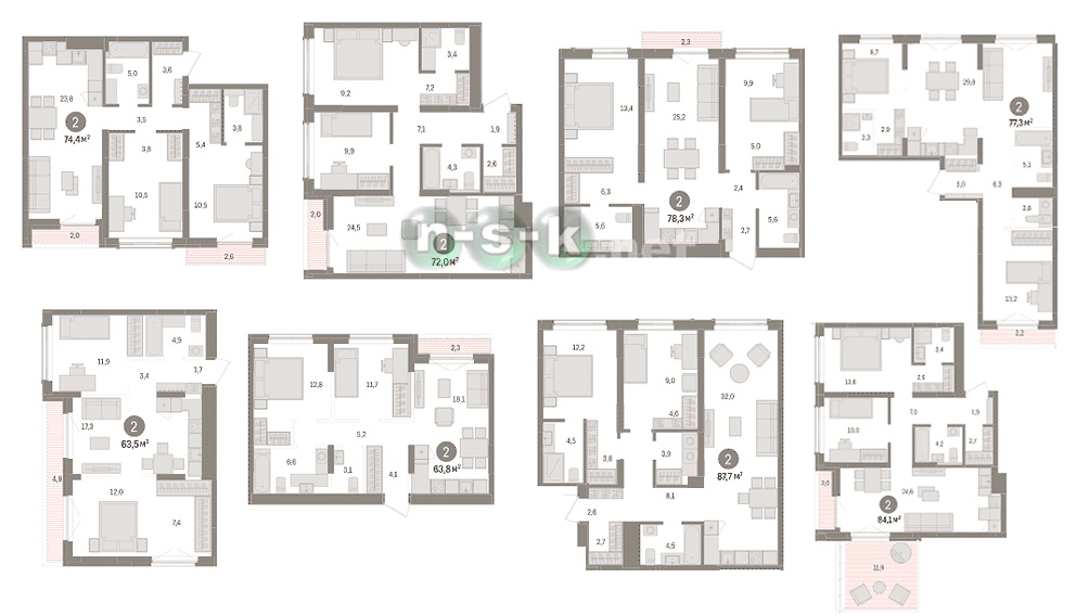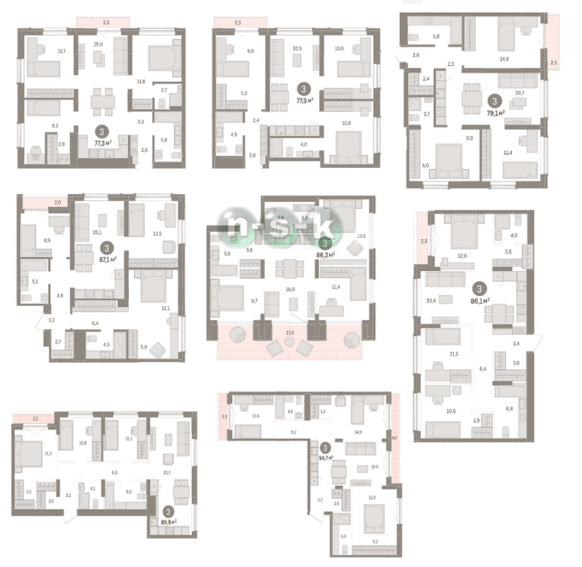 Планировки 2-комнатных квартир 3-комнатные квартиры