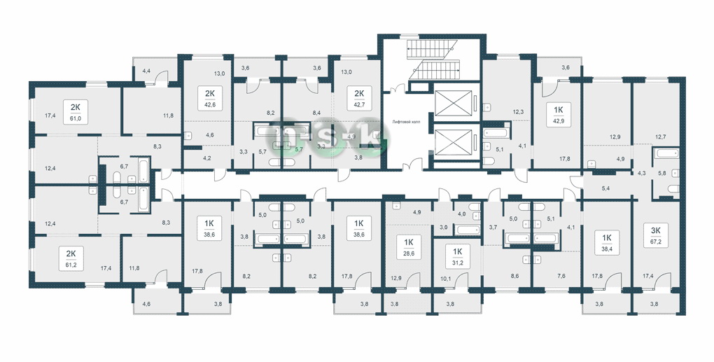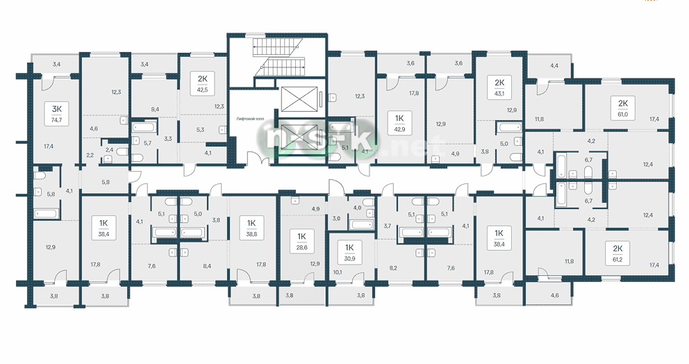Типовая новостройка 13 квартир на этаже в среднем Без отделки + Под ключ Высота потолка 2,69 м