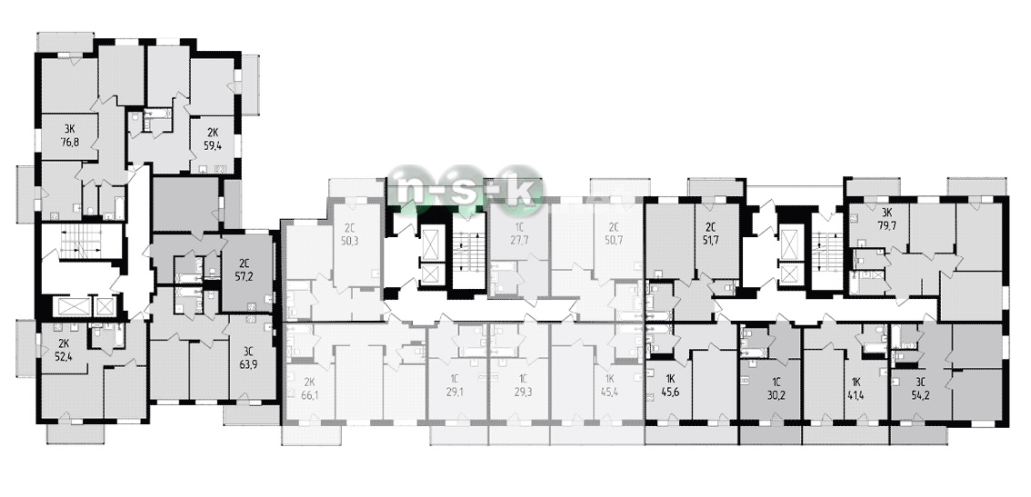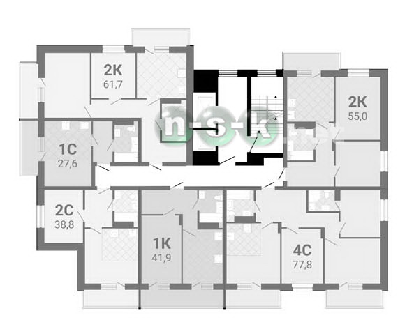 На каждом этаже новостройки расположено около 6 квартир. Это очень хорошие показатели для Новосибирска, свидетельствующие о комфортной площади квартир и ориентации на постоянный состав жителей дома. Такая поэтажная разбивка соблюдает правильный баланс: многокомнатные жилые помещения представлены в необходимом количестве, нет перекоса в сторону 1-комнатных квартир и студий. Еще о новостройке по ул.Серафимовича, 12 стр