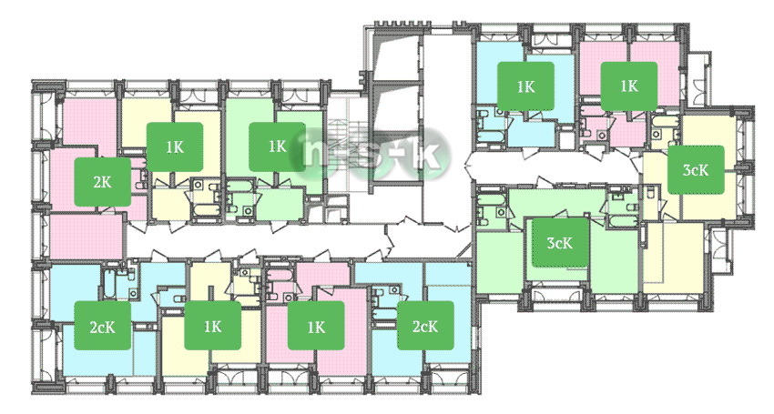 На каждом этаже новостройки расположено около 10 квартир. Для современной новостройки это пограничные показатели: чуть больше квартир на лестничной клетке, и о комфортном проживании остается только мечтать. Исключение составляют нестандартные подъезды, объединяющие несколько секций. Еще о новостройке по ул.Комсомольский проспект, 6, Федора Ивачева, 6 стр