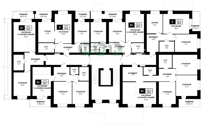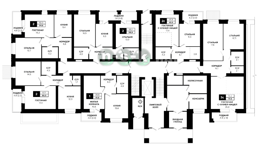Комфорт-класс 6 квартир на этаже в среднем Квартиры под самоотделку Высота потолка 2,7 м