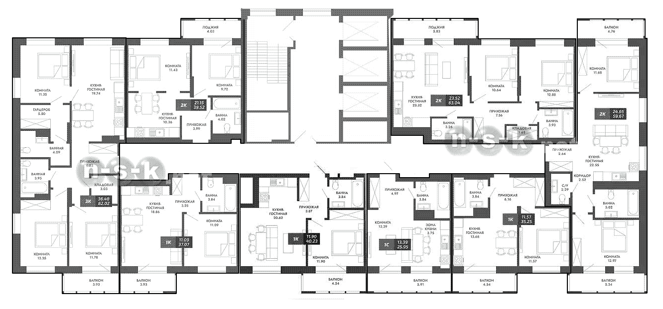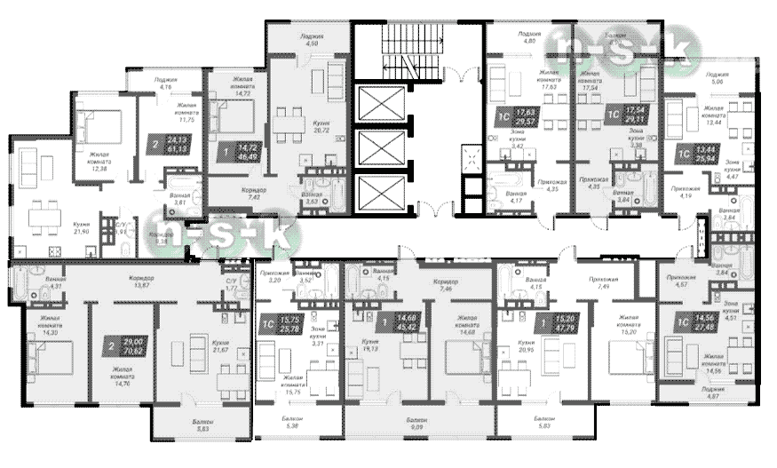 План типового этажа - секция 1 Поиск новостройки