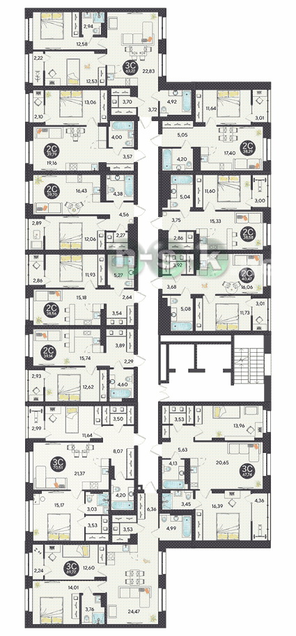 На каждом этаже новостройки расположено около 9 квартир. Это средние показатели для городской недвижимости, вписывающиеся в правильную квартирографию и стандартную разбивку по площади квартир и количеству комнат. Еще о новостройке по ул.Чулымская 1-я (Ясный берег), 10/1