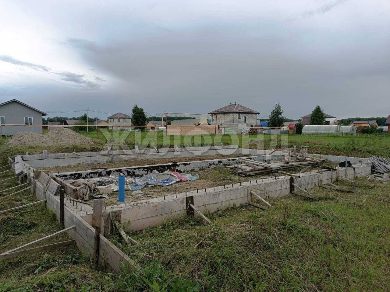 Продам хороший, ровный участок. Въезд на территорию микрорайона через шлагбаум. Дороги частично уложены асфальтом, в планах посёлка заасфальтировать везде. Зимой дороги чистят. На участке подключено электричество, подведен газ до участка, есть скважина с водой. ( Со временем в посёлке будет проведено центральное водоснабжение.) На территории залит ленточный мелко заглубленный фундамент на песчаной подушке шириной 1м, для дальнейшей заливки опалубки. Ленточный фундамент заливался для поднятия дома, сверху планировалась заливка железо-бетонной плиты. Для плиты есть арматура, доски для опалубки. Есть два камаза песка для заполнения ленточного фундамента, а так же винтовые сваи для бани и гаража. Размер фундамента 12,5*8,3. Возможен торг.